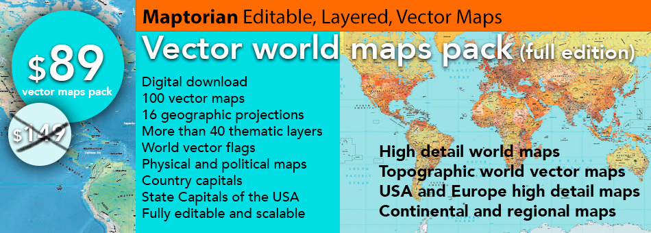 Digital download (10 GB of downloadable maps in several files). Fully editable and scalable. Maps in AI format for Adobe Illustrator (CS3 or higher), layered (the maps can also be imported and edited with graphic design programs such as Inkscape or Affinity Designer).